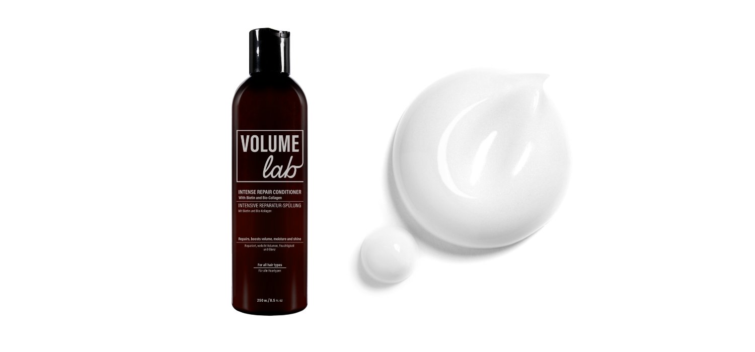Intensywnie odbudowująca odżywka VOLUME LAB (250 ml): Po umyciu włosów szamponem nałóż odżywkę na całe włosy. Pozostaw odżywkę na 1-2 minuty, a następnie spłucz ciepłą wodą.
